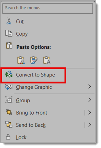 Once placed, right-click and choose Convert to Shape (if needed) so all the PowerPoint style options are available.