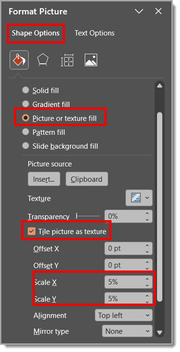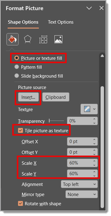 Note: You may need to adjust the Scale X and Y percentages depending on the size of the logo being used for the repeated texture.