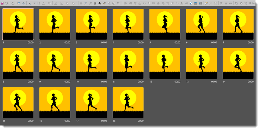 We then created an 18-slide (or in traditional animation terms, an 18-frame) animation in PowerPoint, using each position of our runner – one position for each slide.
