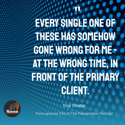 NEW EPISODE of The Presentation Podcast releases tomorrow, Tuesday, December, 2nd 2025! Drawing from years of experience, this episode has 25 things NOT to do in PowerPoint. Design things, template setup things, presenting things. This is literally decades of experience – and frustration – as Troy, Nolan and Sandy break down 25 common PowerPoint pitfalls with their top tips, expert recommendations and actionable advice to help everyone avoid these all-too-common PowerPoint mistakes. Listen on your favorite podcast app, or at The Presentation Podcast site here.