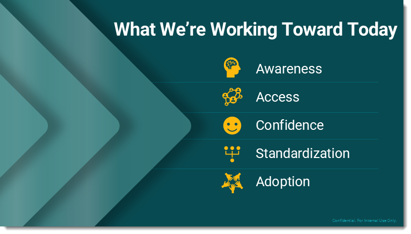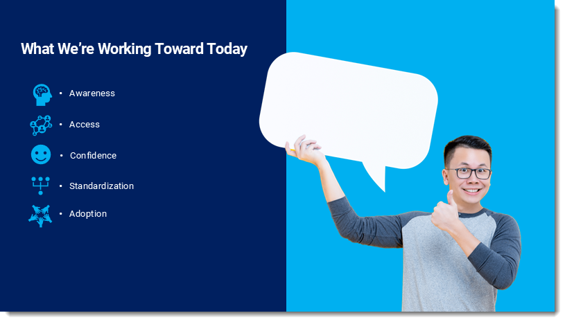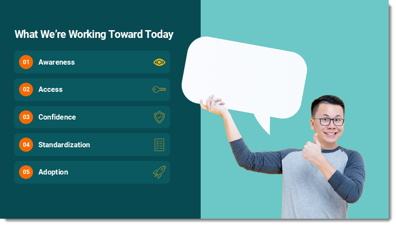 - The conversation focused not only about the bullet list text boxes not being aligned (which was very obvious when the slide was on a 30′ wide screen!), but also that the icon + bullet + key word does not make an effective slide.