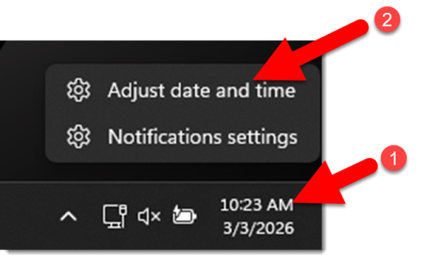 - Right-click the clock in the task bar.
